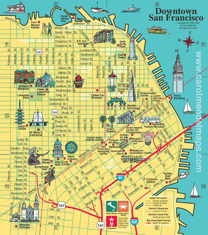 - Fisherman's Wharf. Northern side of the city on the bay. Tourist trap. Avoid is except for going to Alcatraz, which is highly recommended. Get your tickets ahead of time from www.alcatrazcruises.com though cause it sells out well in advance.