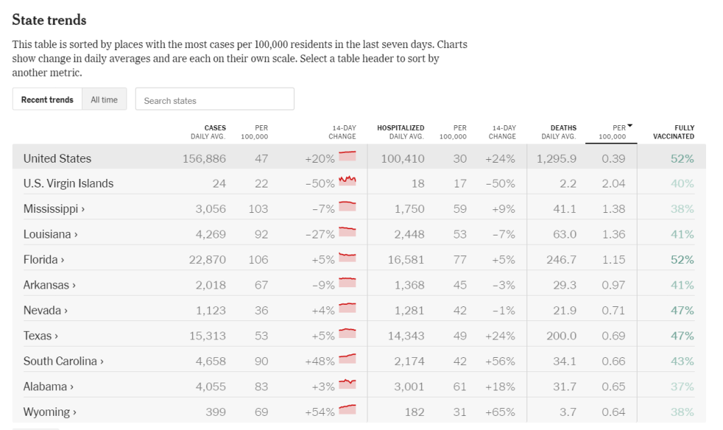 The CDC provides great data focused on Per 100K numbers in their charts. The screenshot below is from the date I put this post together, and it is updated regularly.