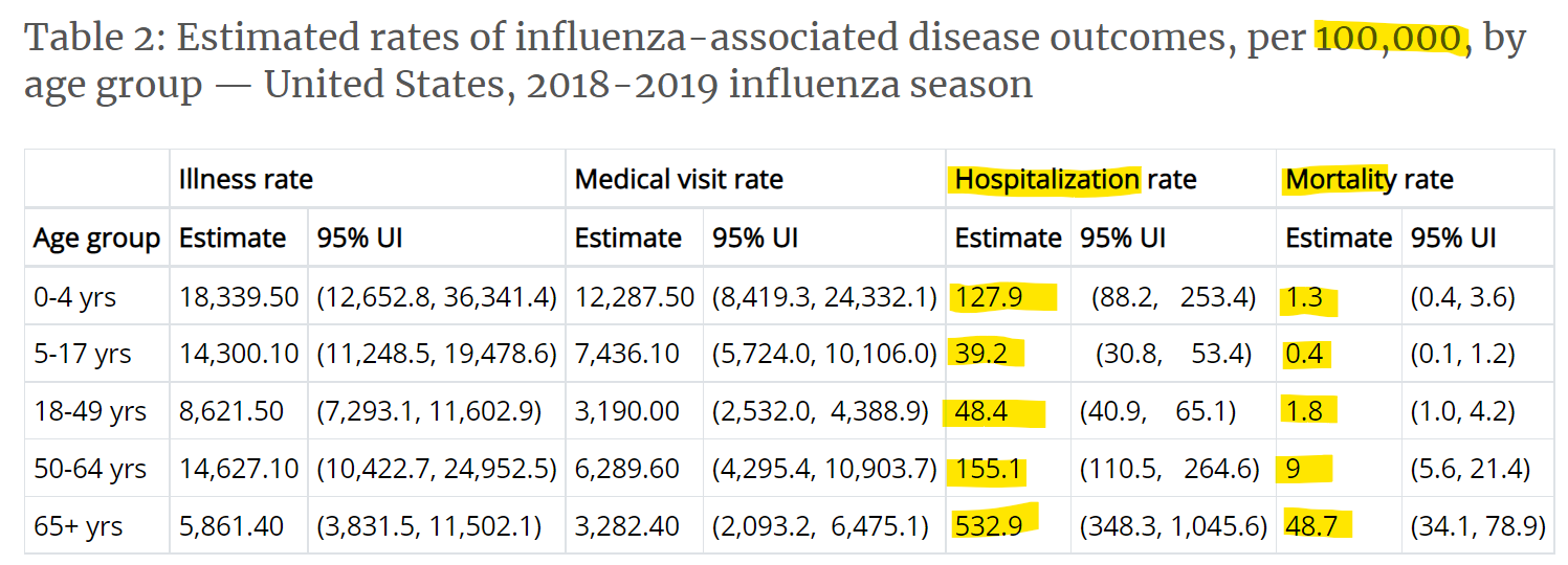 * Ages Not Broken Out Equally by CDC COVID Data and Influenza Data