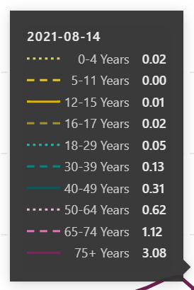 Similarly to Hospitalization data, while this number is changing a lot, and varies significantly by location (because of uneven vaccination rates) and even more by age group, knowing what this number is provides a basis of comparison to other things.