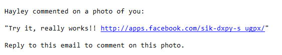 The weird thing is, the very same minute that I got this bogus notification about being tagged in a picture, I got a notification that this same friend had commented on a picture of mine, with a really suss looking lin.